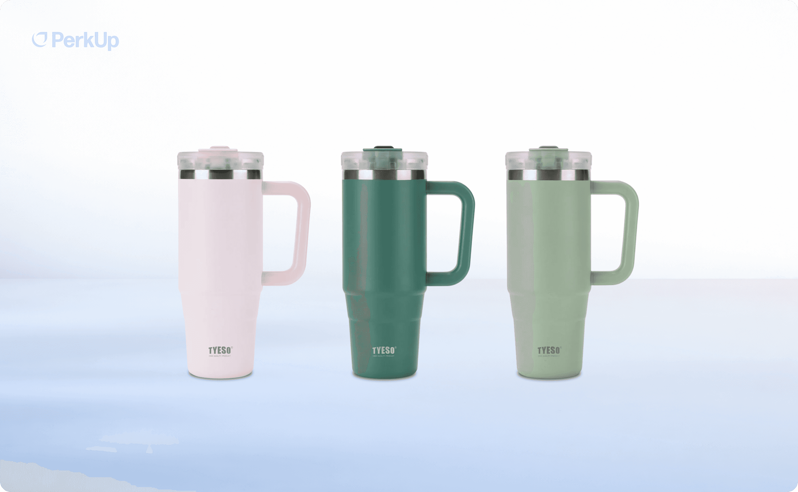 If you want to go bigger (in both size and impression), the 40 oz TYESO AURA tumbler is a statement piece. Plus, this one delivers on all fronts: double-wall vacuum insulation, a secure lid design, an integrated carry handle, and 1,200 ml of capacity for all-day hydration. It’s the premium giveaway that makes people stop at your booth and say, “Wait, you’re giving these away?” Now, that’s a conversation starter.